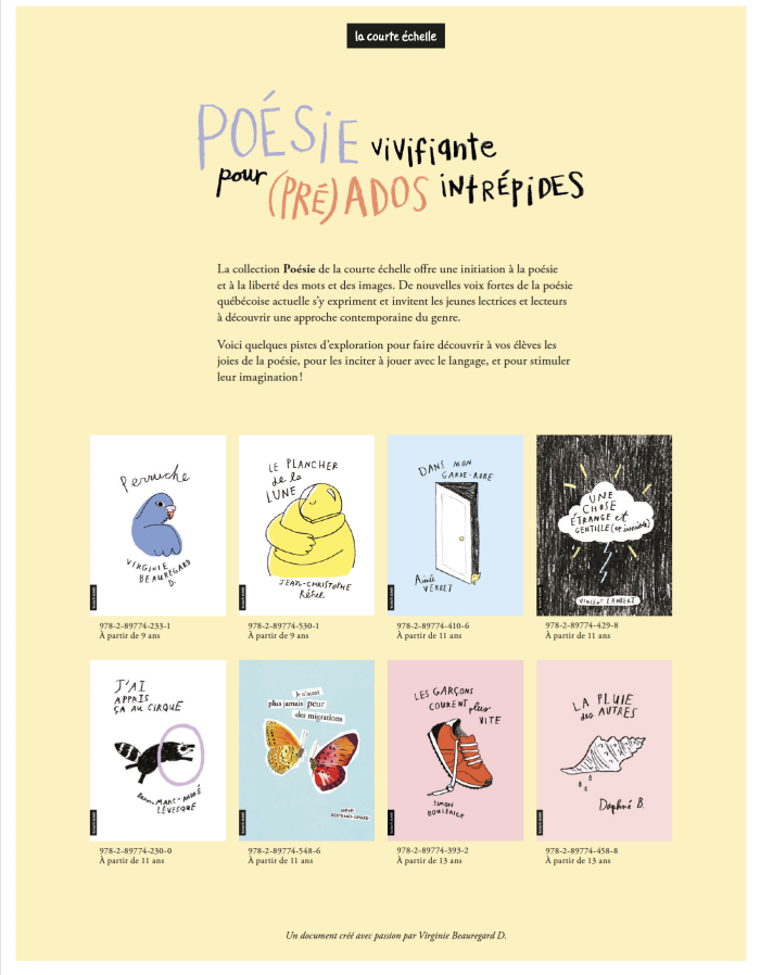 Un document pour apprivoiser la poésie en classe, créé par Virginie Beauregard D.
